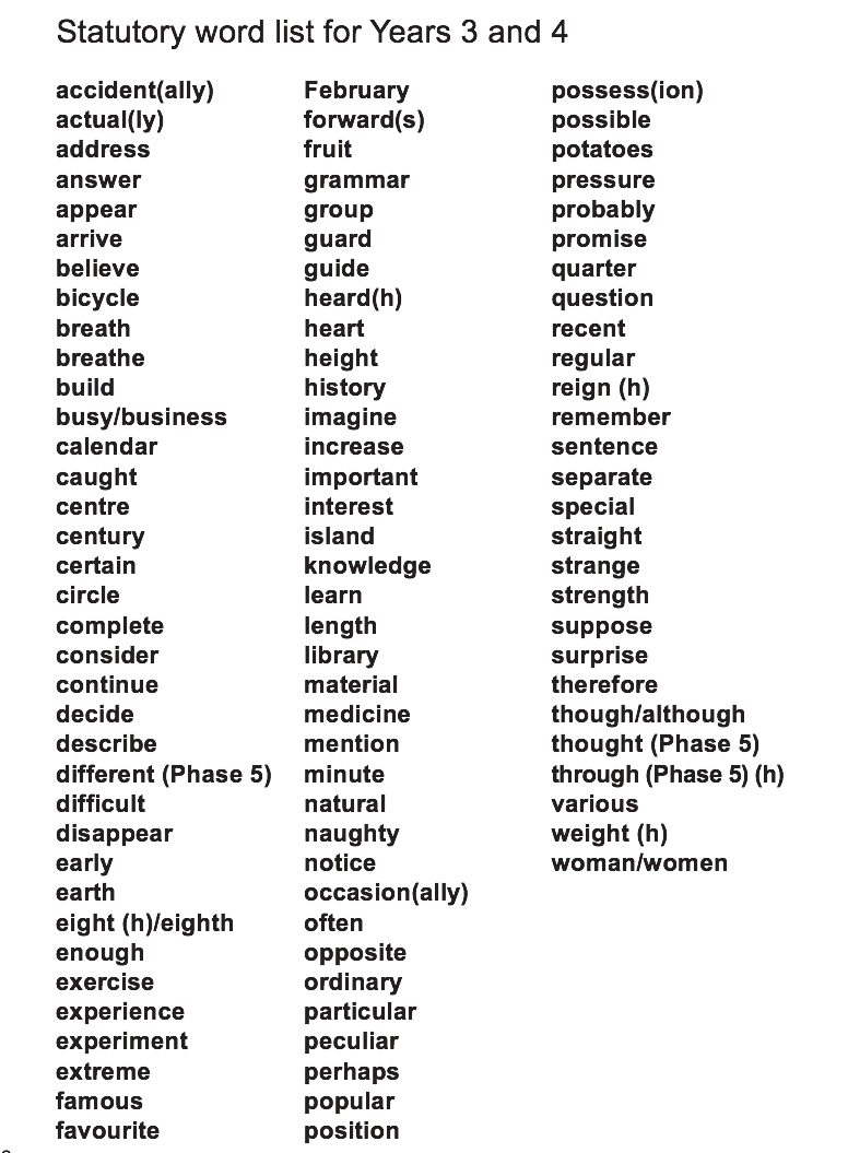 These spelling lists are for Years 3 and 4, and Years 5 and 6 and are derived from the National Curriculum. We have regular spelling lessons in school and children are tested weekly on the spellings that are send home. We will also be checking that they spell the words correctly in their own writing.