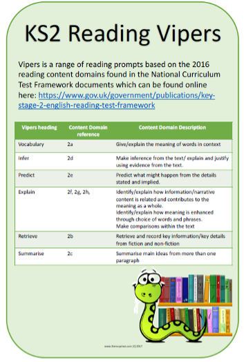VIPERS is an acronym that stands for the six key reading skills children need to develop strong comprehension: